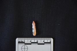| Description / विवरण | Chalcedony blade heated has a midridge on dorsal side, striking platform, bulb on ventral side, triangular cross-section and use-wear marks on cutting edges. |