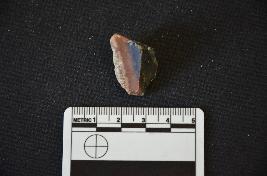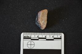 | Description / विवरण | Chert scraper has flake scars on surface, striking platform, negative bulb on ventral side and retouches on working edge. |