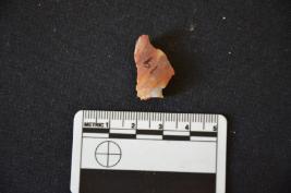 | Description / विवरण | Chert utilized flake has flake scars on dorsal side, striking platform, bulb on ventral side and use-wear marks working edge. |