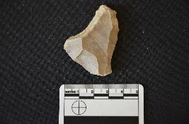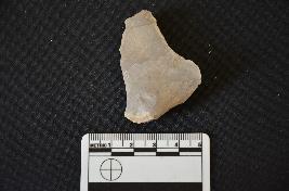 | Description / विवरण | Chert utilized flake has flake scars on dorsal side, striking platform bulb with errailure on ventral side and use wear marks on working edge. |