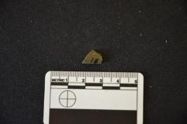 | Description / विवरण | Fragment of chert scraper has a ridge on dorsal side, retouches on working edge and triangular cross-section. |
