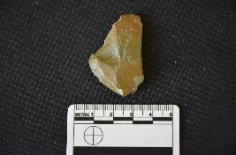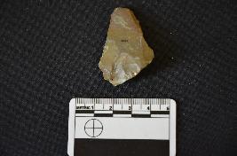 | Description / विवरण | Chert scarper has flake scars on dorsal side. Striking platform, negative bulb on ventral side and retouches on working edge. |
