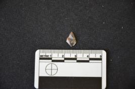 | Description / विवरण | Fragment of chalcedony blade has two ridges on dorsal side, striking platform, broken from distal end, trapezoidal cross-section and raw-material given heat treatment. |