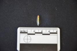 | Description / विवरण | A chalcedony blade lightly heated. It is with bulb. One edge is with retouches and the other is with use mark. |