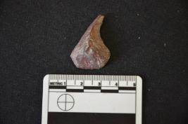 | Description / विवरण | Chert utilized flake has a mid ridge on dorsal side, striking platform and use-wear marks on working edge. |