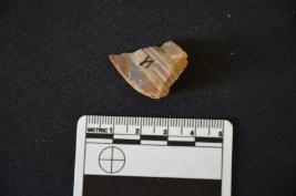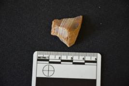 | Description / विवरण | Agate utilized flake has flake scars on dorsal side, striking platform, chipped off bulb on ventral side and use wear on working edge. |