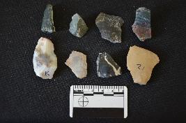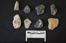 | Description / विवरण | Fragment of chert blade has a mid ridge on dorsal side, striking platform, bulb of percussion on ventral side, broken along at distal end and triangular cross-section. |