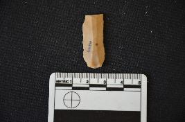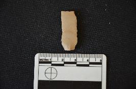 | Description / विवरण | Fragment of chert blade has two ridges on dorsal side striking platform, bulb with errailire on ventral side, retouches on cutting edges, broken from distal end and trapezoidal cross-section. |