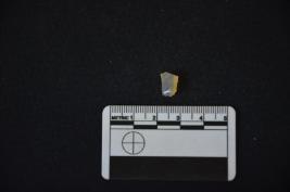 | Description / विवरण | Chalcedony blade fragment has a ridge on dorsal side, striking platform, bulb with errailure on ventral side, broken from distal end and use-wear marks on one cutting edge. |