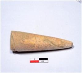 | Description / विवरण | A long sized of shell point showing conical in shaped, pointed on end, slightly broken on upper part, having rough surface. |