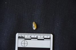 | Description / विवरण | Chalcedony blade has a crested guided ridge on dorsal side, striking platform, bulb on ventral side, triangular cross-section and triangular cross-section. |