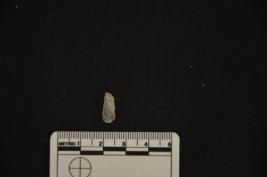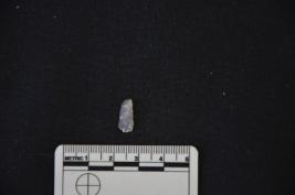| Description / विवरण | Chalcedony blade has a crested guided ridge on dorsal side, striking platform, bulb on ventral side, use-wear marks on cutting edges and triangular cross-section. |