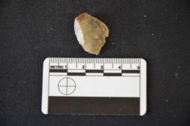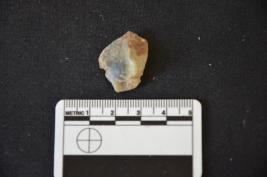 | Description / विवरण | Chert utilized flake has flake scars on dorsal side, striking platform, diffused bulb on ventral side and use-wear marks on working edge. |