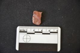 | Description / विवरण | Fragment of chert blade has flake scars on dorsal side, striking platform, chipped off bulb on ventral side, broken from distal end use-wear marks on cutting edge and triangular cross-section. |