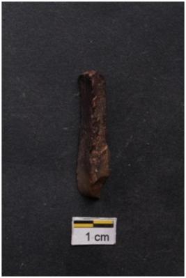 | Description / विवरण | Blade, a ridge on dorsal surface, use-ware marks on both working edges. |