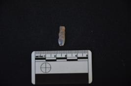 | Description / विवरण | Chalcedony blade fragment haa a ridge on dorsal side, striking platform, bulb on ventral side, broken from distal end, triangular cross-section and use-wear marks on cutting edges. |