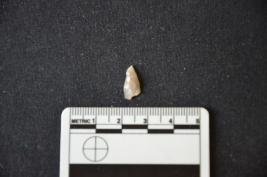 | Description / विवरण | Fragment of chalcedony blade has two ridges on dorsal side, broken from both ends and use-wear marks on cutting edge. |
