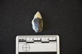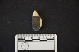 | Description / विवरण | Chert utilized flake has striking platform, diffused bulb on ventral side, midridge on dorsal side use-wear marks on working edge and triangular cross-section. |