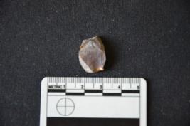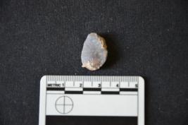 | Description / विवरण | Chert utilized flake has two ridges on dorsal side, striking platform, bulb on ventral side and use-wear marks on working edge. |