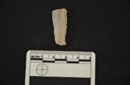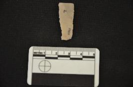 | Description / विवरण | Fragment of chert blade has two ridges on dorsal side, striking platform, chipped off bulb on ventral side, broken from distal end, rectangular on cutting edges and trapezoidal cross-section. |