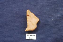 | Description / विवरण | A chert roll scraper with one side thick and with retouches |
