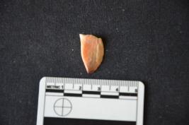 | Description / विवरण | Chert utilized flake has striking platform, bulb on ventral side and use-wear marks on working edge. |