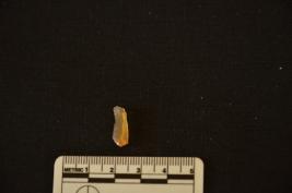 | Description / विवरण | Chalcedony blade fragment has a crested ridge on dorsal side, striking platform, bulb on ventral side, broken from distal end and use-wear marks on edges. |