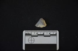 | Description / विवरण | Chalcedony blade fragment has a midridge on dorsal side, striking platform, diffused bulb on ventral side, broken from distal end and use-wear marks on cutting edges. |