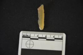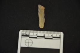 | Description / विवरण | A chalcedony heated blade with bulb and broken distal end use mark on one edge. |