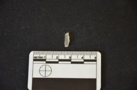 | Description / विवरण | Fragment of chalcedony blade has two ridges on dorsal side, broken from both ends, use-wear marks on working edge and trapezoidal cross-section. |