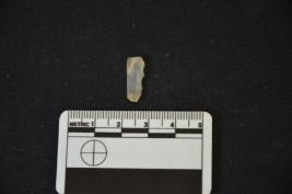 | Description / विवरण | Fragment of chalcedony blade has two ridges on dorsal side, striking platform, bulb on ventral side, broken from distal end and use-wear marks on working edge. |