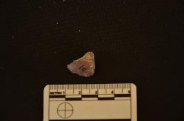 | Description / विवरण | Chert utilized flake has flake scars on dorsal side, striking platform, bulb on ventral side and use-wear marks on ventral side. |