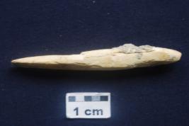| Description / विवरण | The point is rounded and thick on one end and the other is faceted bevel end. It is slightly encrusted. |