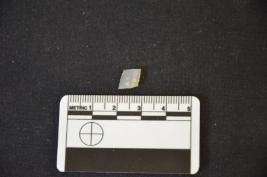 | Description / विवरण | Fragment of chalcedony blade has two ridges on dorsal side, broken from both ends, use-wear marks on working edge and trapezoidal cross-section. |