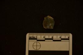 | Description / विवरण | A chert utilized flake has ridge on dorsal side, striking platform, bulb with errailure on ventral side and use wear marks on working edge. |