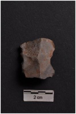 | Description / विवरण | Double sided scraper, a ridge on dorsal surface, retouches on working edges. |