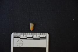 | Description / विवरण | A chalcedony blade with bulb and distal end broken. Use mark on both the edges. |
