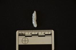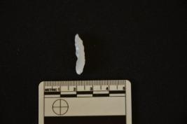 | Description / विवरण | Chalcedony backed blade has crested ridge on dorsal side striking platform backing along at one edge and retouches on other edge. |