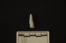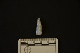 | Description / विवरण | Chalcedony blade fragment has a crested ridge on dorsal side striking platform and use wear marks on edges. |