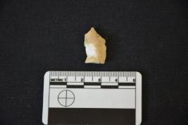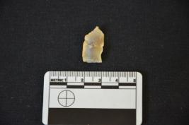 | Description / विवरण | Chalcedony utilized flake has cortex on dorsal side, striking platform, diffused bulb on ventral side and use-wear marks on working edge. |