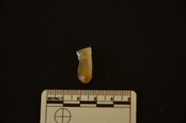 | Description / विवरण | Chalcedony blade fragment has crested ridge on dorsal side, striking platform,bulb with errailure on proximal end, broken from distal end, use-wear marks on edges and heated. |