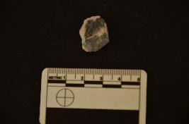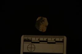 | Description / विवरण | Chert utilized flake has flake scars on dorsal side, striking platform, diffused bulb on ventral side and use-wear marks on working edge. |