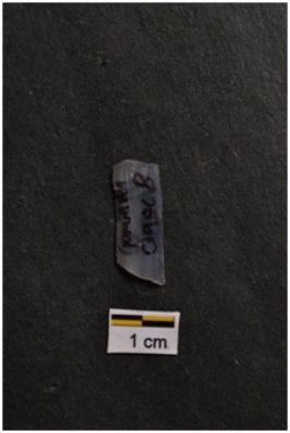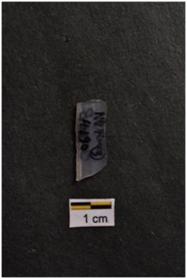 | Description / विवरण | Blade, parallel sided, two ridges on dorsal surface, use-ware marks on both working edges. |