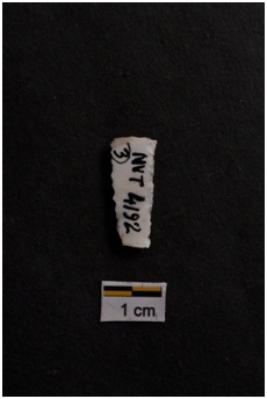 | Description / विवरण | Blade with tapering sides, a ridge on dorsal surface, both edges are serrated. |