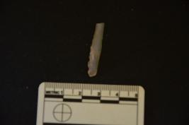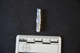 | Description / विवरण | A chalcedony crested guiding ridge blade with retouches and bulb. It has use mark on one edge. |