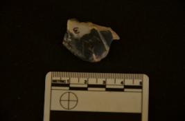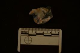 | Description / विवरण | Chert utilized flake has flake scars, striking platform, bulb on ventral side and use-wear marks on working edge. |