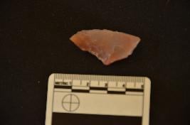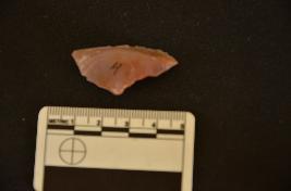 | Description / विवरण | Chalcedony utilized flake has flake scars on dorsal side, absent bulb with errailure on ventral side, use wear marks on working edge and raw material given heat treatment. |