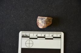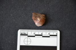 | Description / विवरण | Chert utilized flake has flake scars and ridges on dorsal side, striking platform, bulb on ventral side, broken from distal end and use-wear marks on working edge. |