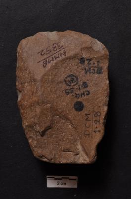 | Description / विवरण | Handaxe, bi-facial, roughly triangular shape |
