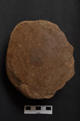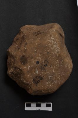 | Description / विवरण | Chopper, made on flake, diffused bulb on ventral surface, cortex visible on dorsal surface. |